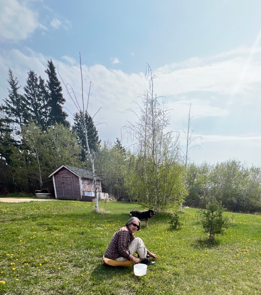 picking dandelions for dye