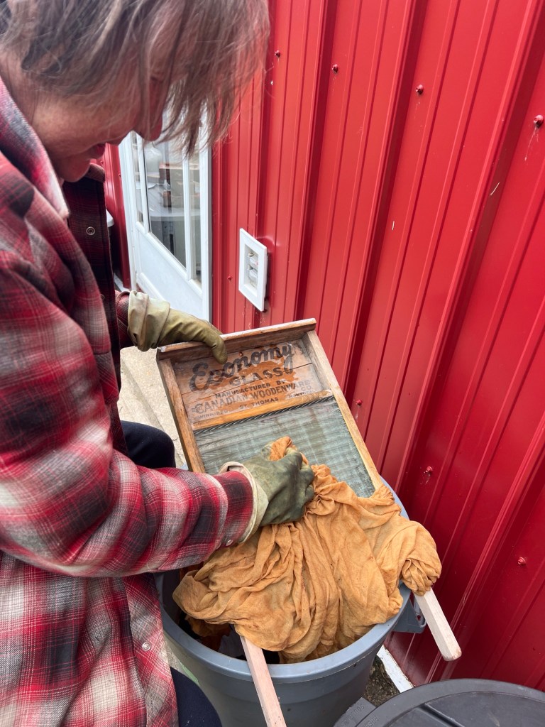 scrub dye “clots” out