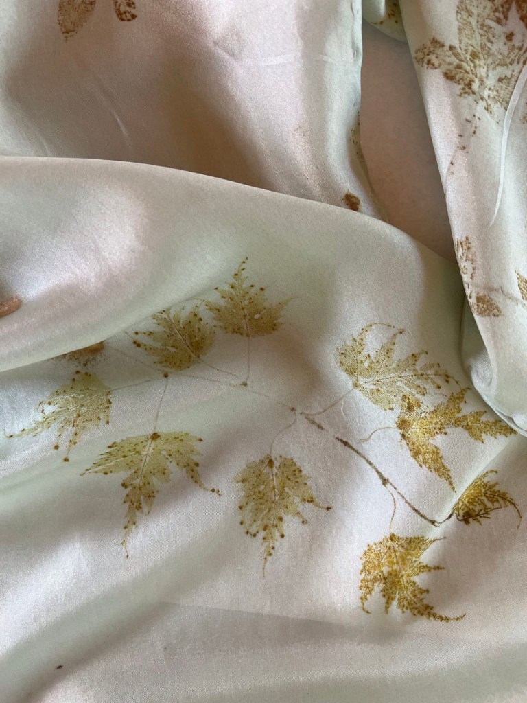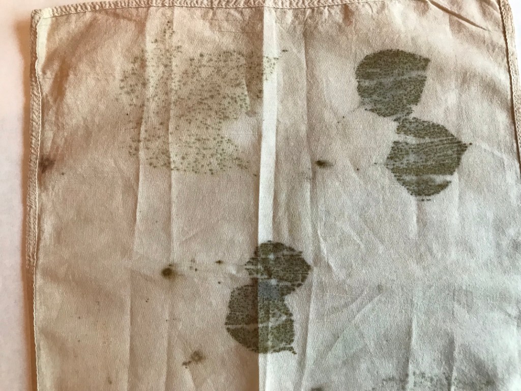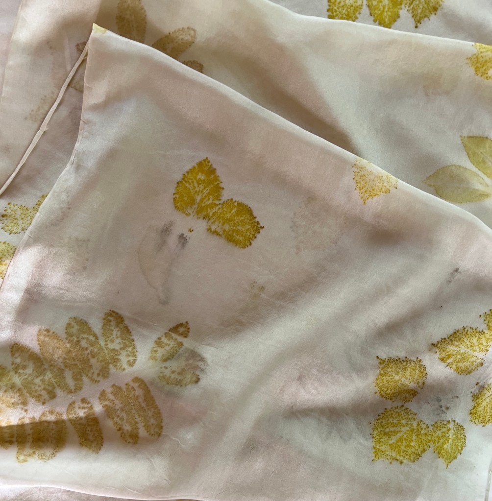 the liquor from boiled rhubarb leaves as natural mordant that works best with animal fibres