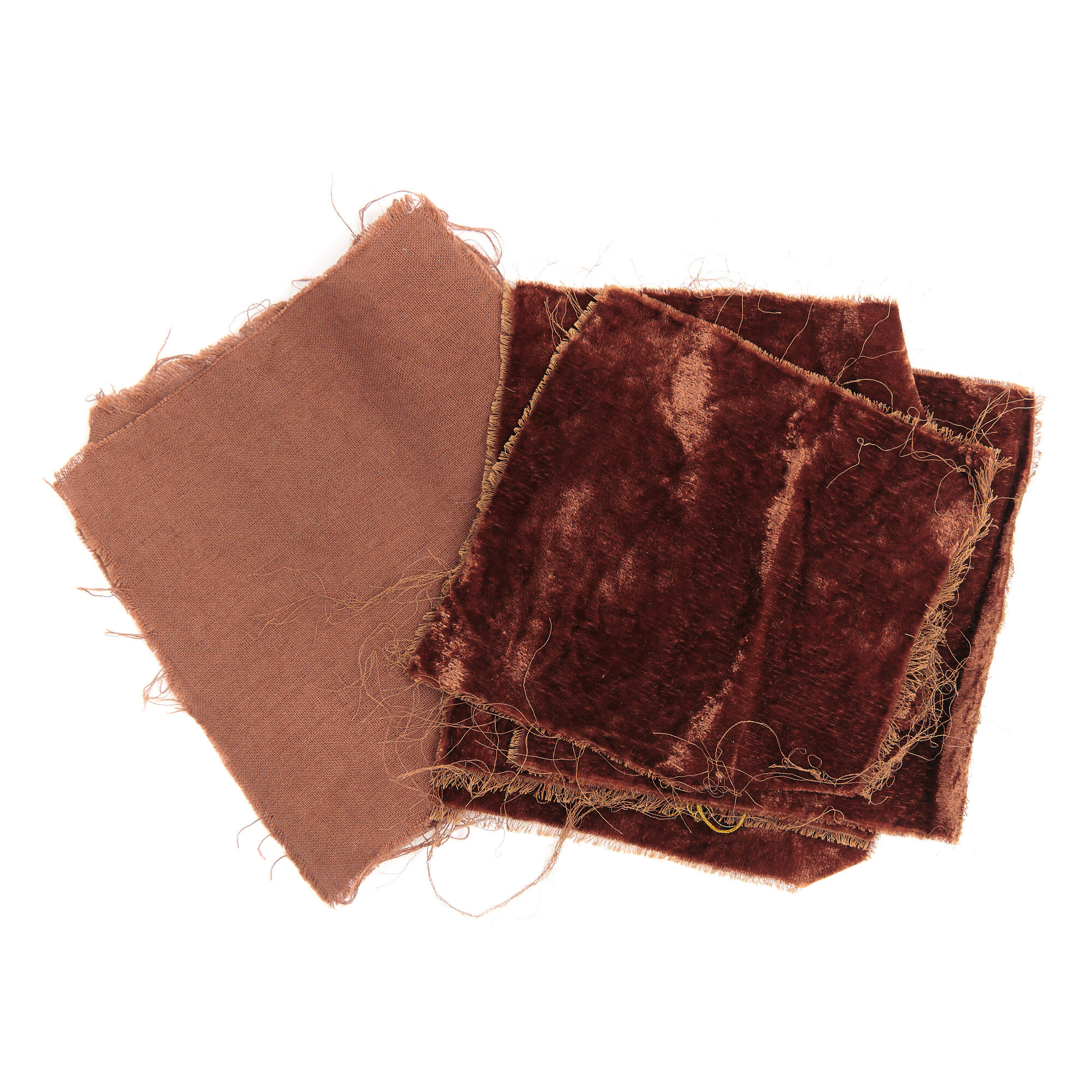 An alum mordant yields toffee browns. The addition of iron at 2-4% WOF yields chocolate browns, while a 5% soda ash or calcium hydroxide rinse will redden the cutch colour. The addition of 2% WOF hydrogen peroxide during the final 15 minutes of dyeing will darken cutch considerably. Allowing the fibre to cool down and sit in the dyebath overnight will give the darkest shades.