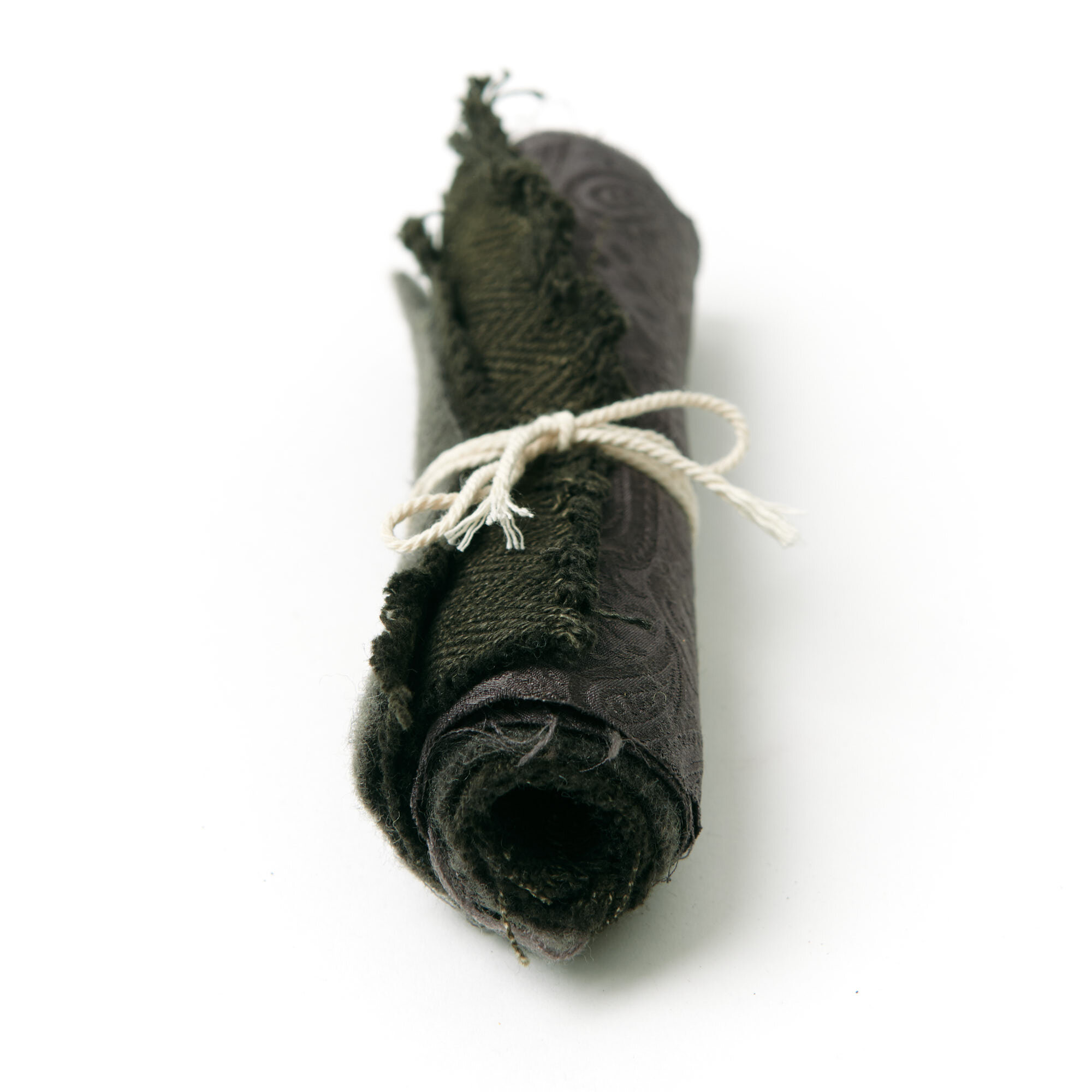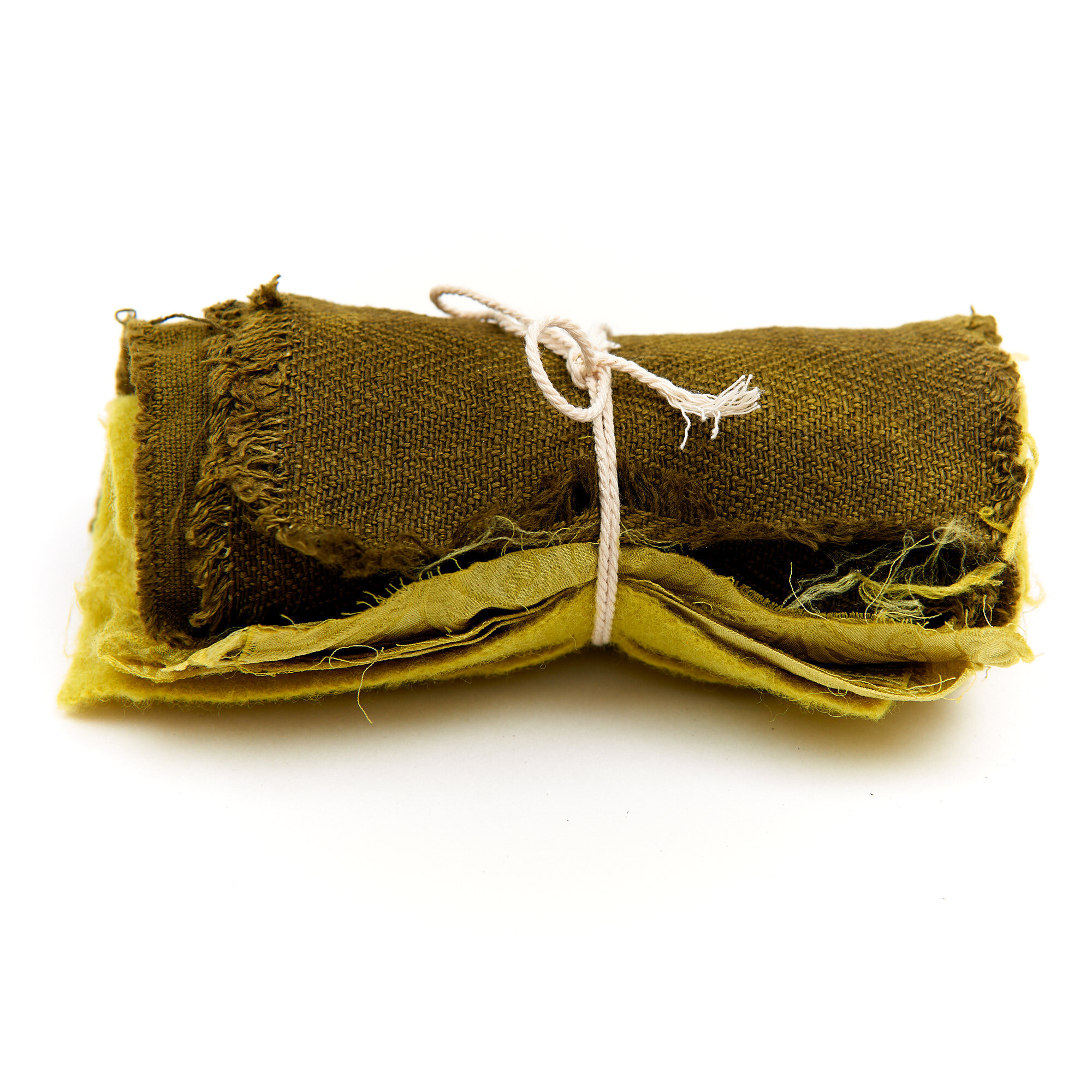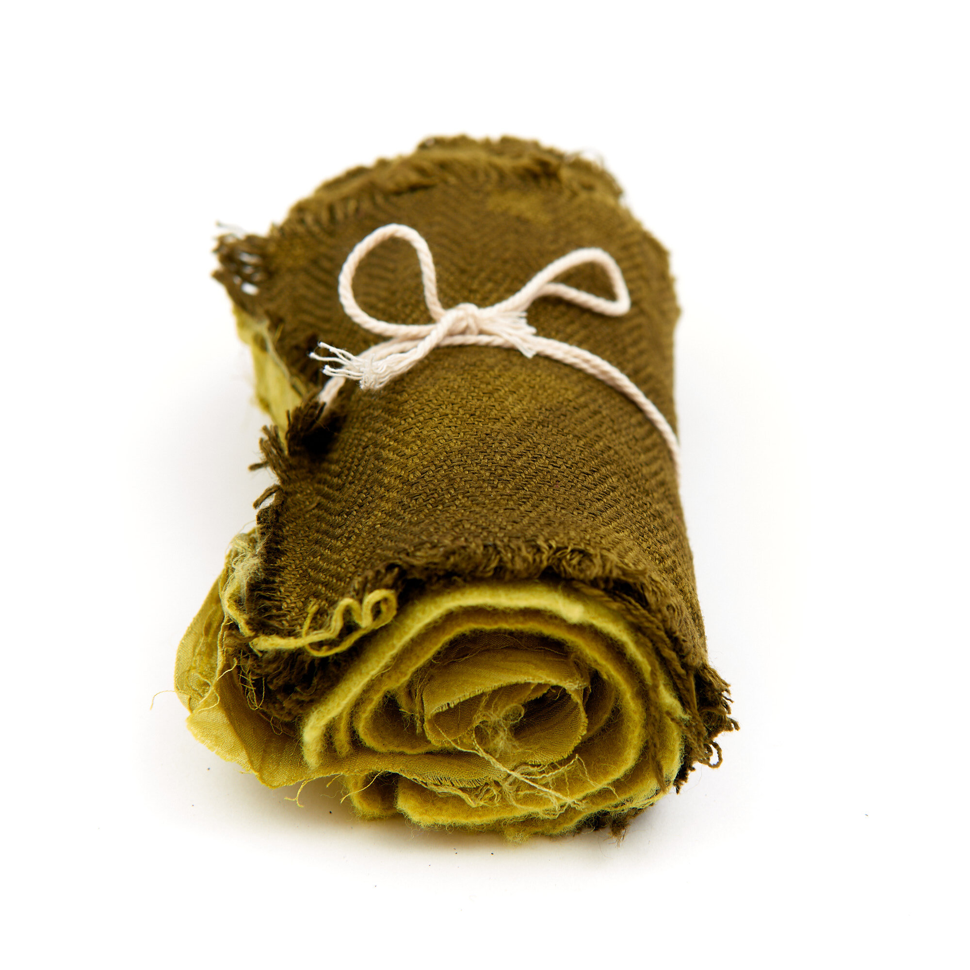We have included it here because it shows up so often in our colour samples. Iron will always interact with tannin to form a black. In fact the formation of a black is a test for the presence of tannin. Depending on the concentrations the results may be light greys. Iron will darken or “sadden” the colours of other dyes while increasing their fastness. Iron may have an adverse effect on both cellulose and protein fibres. We recommend never using it above 4% WOF. In our colour samples it is used at 2% WOF. The unwanted presence of iron can stain cloth, create blotches, spotting and ruin dyeing. For this reason cracked enamel and rusted pots are to be avoided. When using iron, be meticulous about cleaning. Ferrous may also be used as a reducing agent in an indigo dyebath.