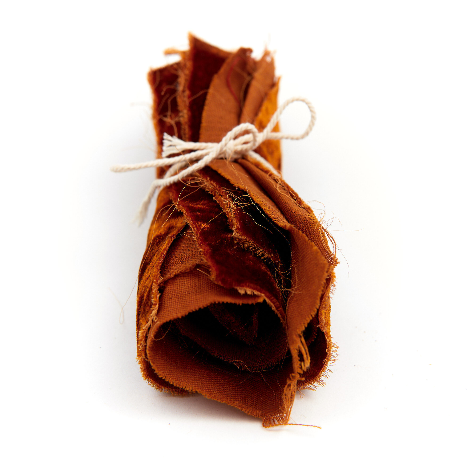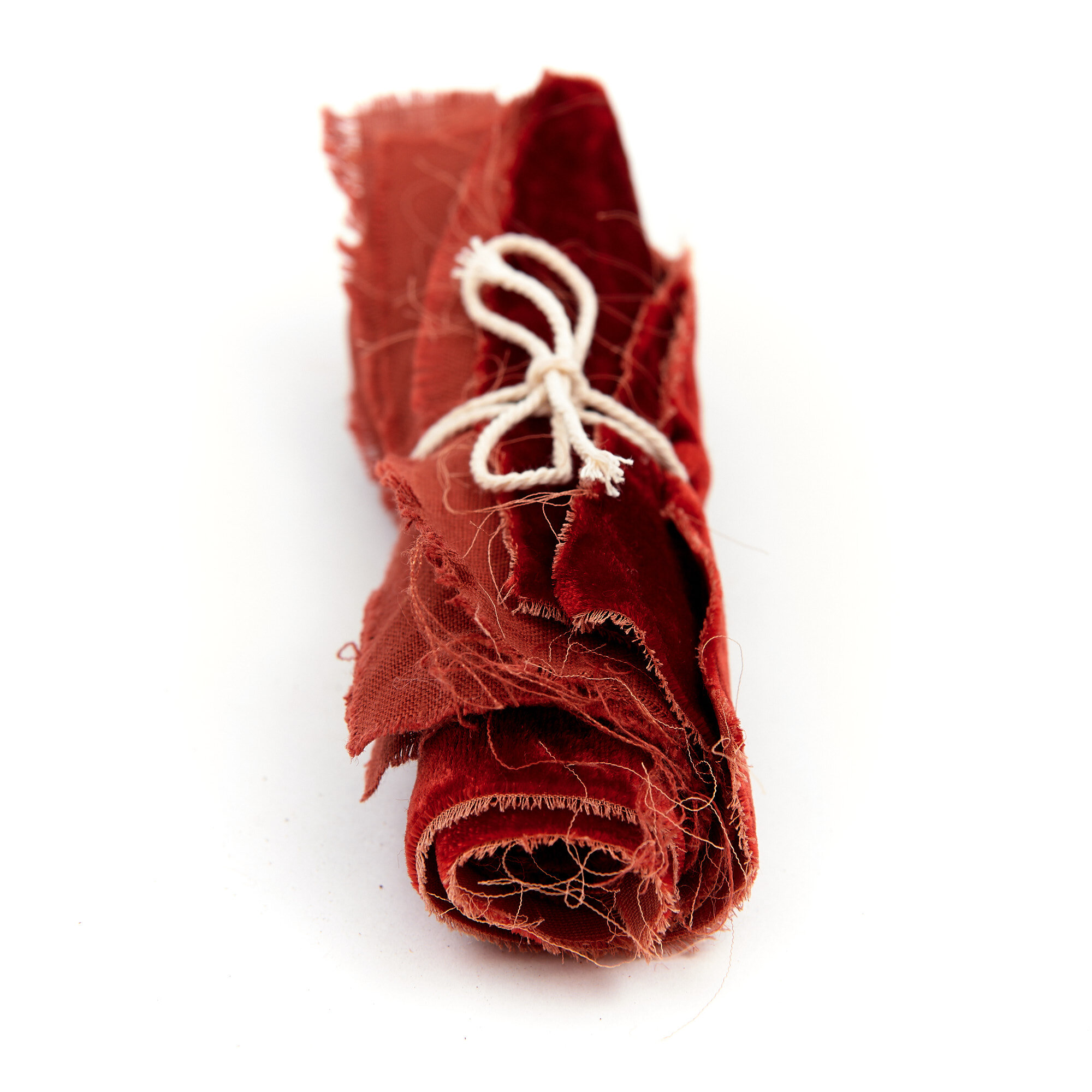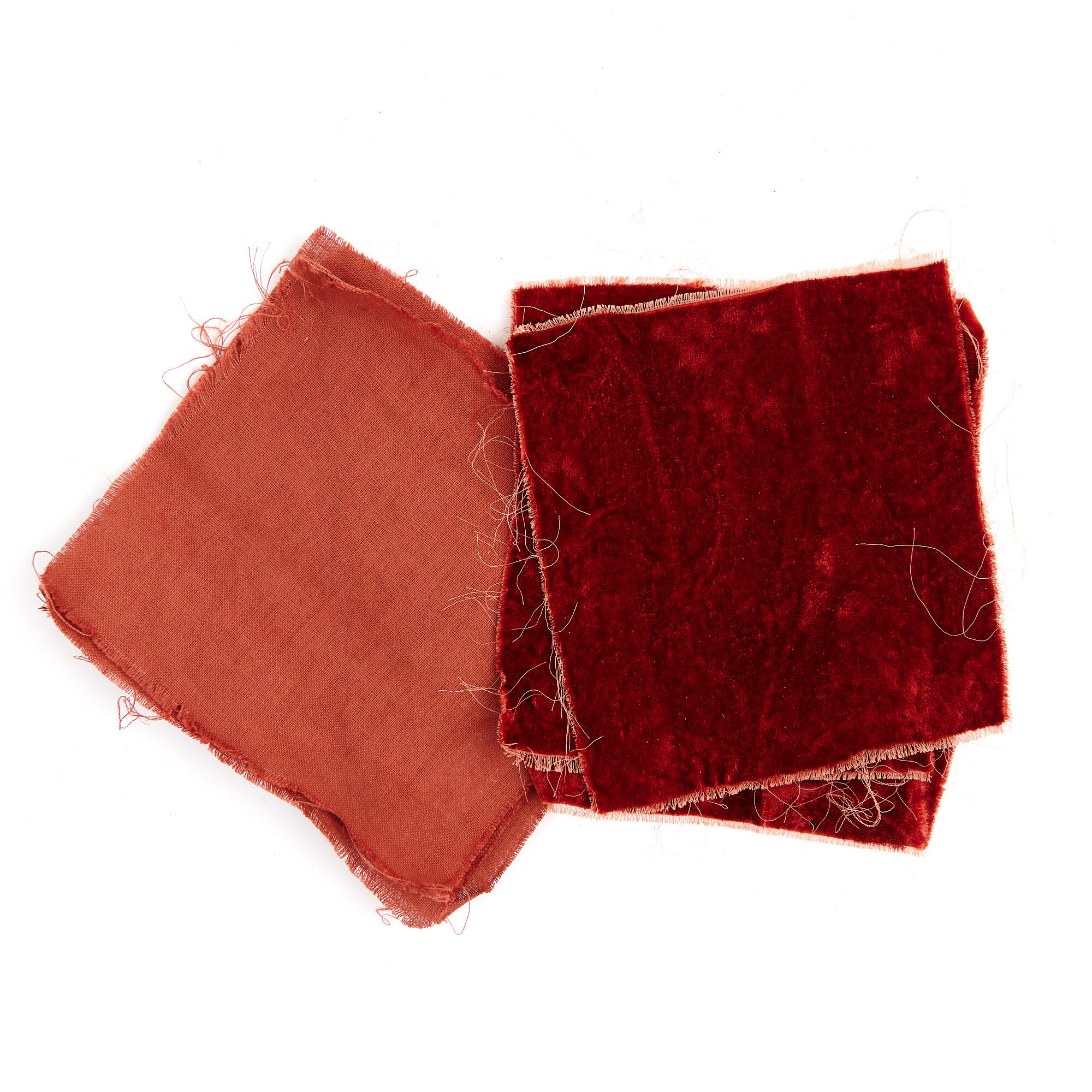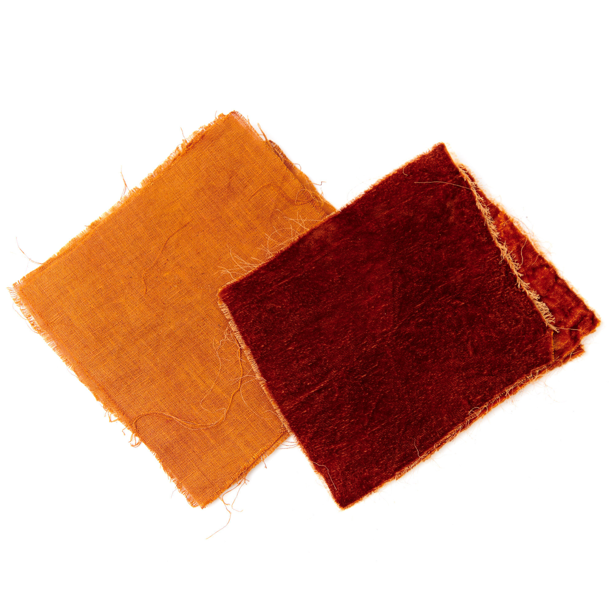 Options: Madder, in combination with cochineal yields a true red, with iron yields garnet, bright orange with alum and cream of tartar, brick red with alum mordant and a higher heat (cordifolia only), the addition of acetic acid or vinegar plus iron will push the colour to a rich brownish-purple.