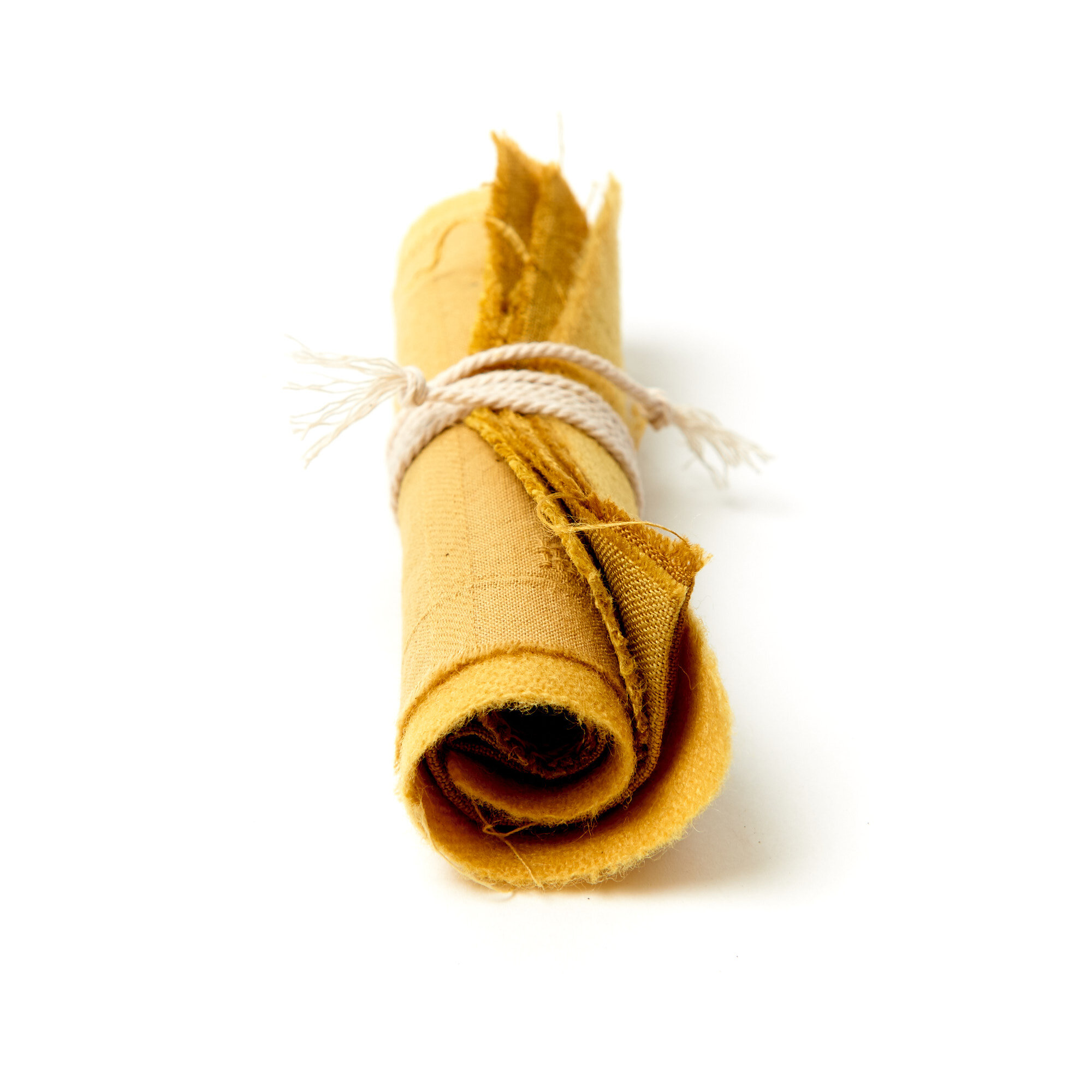 Myrobalan – This dyestuff consists of ground nuts of the Terminalia chebula tree. This tree grows in Nepal, India, Sri Lanka, Burma, Thailand, Indochina and south China. Myrobalan may be used in the mordant procedure or as a dye, giving a light buttery yellow. It is an important tannin for use on cotton in India and southeast Asia due to the light warm colour it imparts to the cloth. Myrobalan is a good foundation for overdyeing. It is also the perfect colour to lay down under a single indigo dip for teal. When used in the tannin procedure, myrobalan requires 15-20% WOF. If using to create a soft butter yellow use 20-30% WOF.
